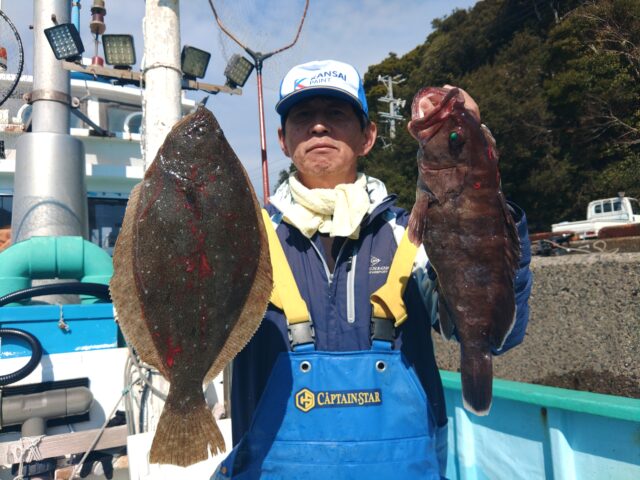 イワシの泳がせ釣りのお客様。本日は有り難うございました。ヒラメ釣り竿頭5匹で船内14匹「37~6…